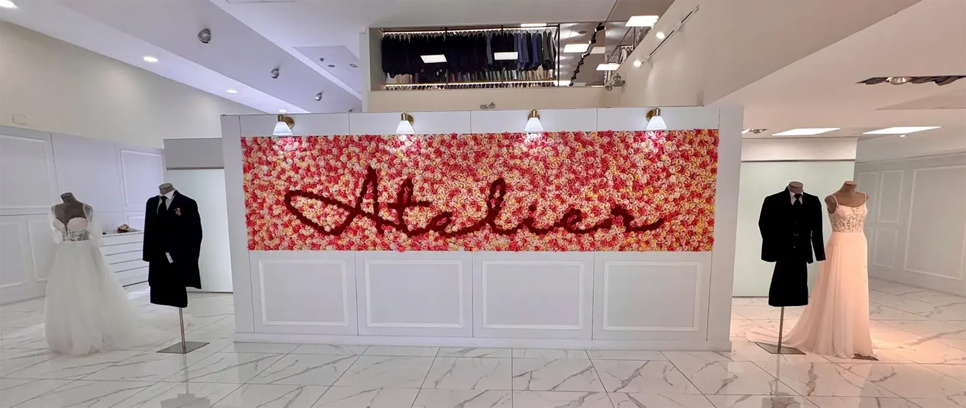 Nuestro Atelier en el Polígono Industrial San José de Valderas, rompe las reglas. Con más de 1.500 m², hemos separado radicalmente los ambientes: una planta exclusiva para ellas y otra para ellos. Podéis venir juntos en el mismo coche, pero la magia del «first look» se mantiene intacta hasta el altar.